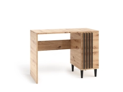 Biurko LANA L7 to funkcjonalny mebel stworzony z myślą o komfortowej pracy i nauce. Doskonale sprawdzi się zarówno w domowym biurze, jak i pokoju młodzieżowym. Industrialna stylistyka z czarnymi lamelami na froncie oraz wysokie, drewniane nóżki nadają mu wyjątkowego charakteru i lekkości.