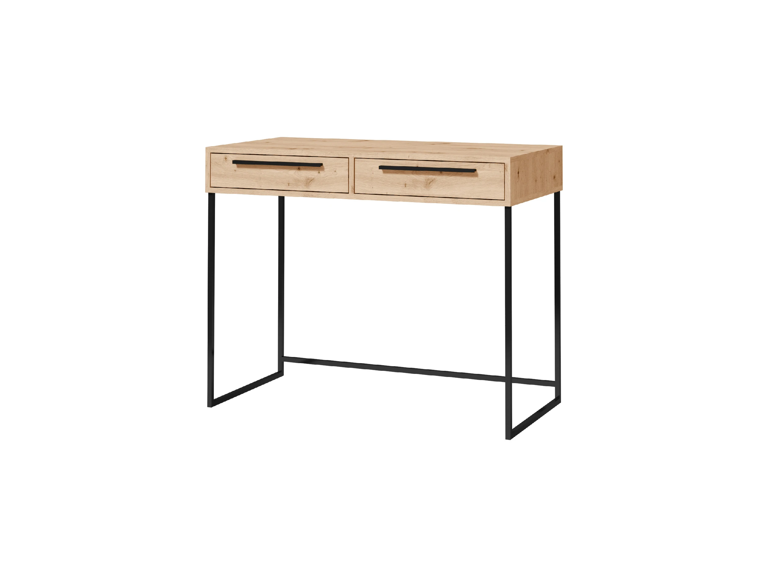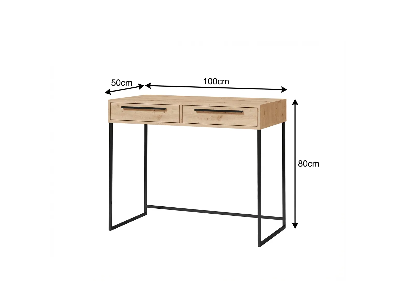 Biurko 100x50 cm z dwiema szufladami w stylu loft – VITO V14, dąb artisan na metalowym stelażu