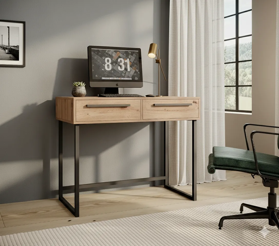 - Kompaktowe biurko 100x50 cm – idealne do pracy, nauki lub jako toaletka w sypialni.