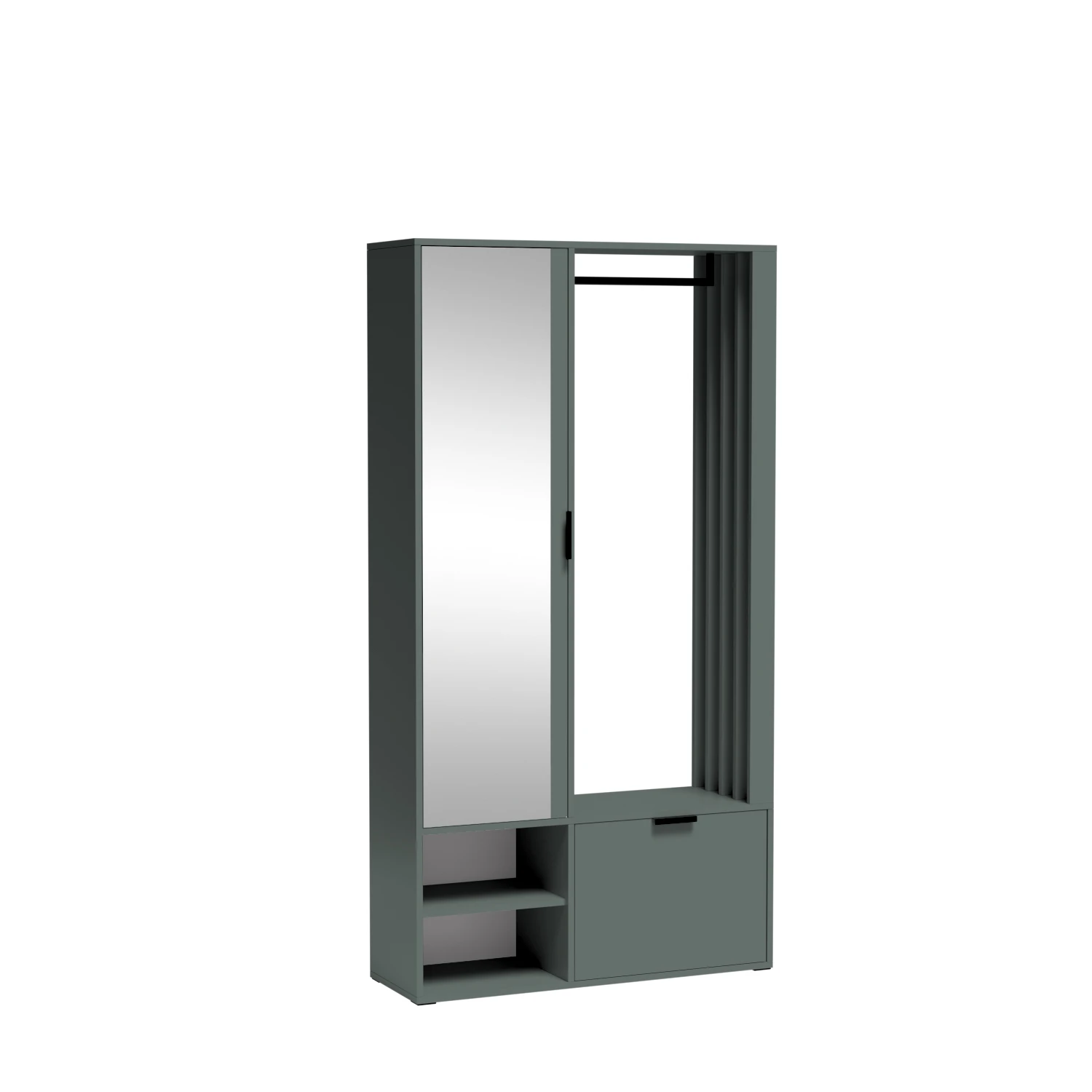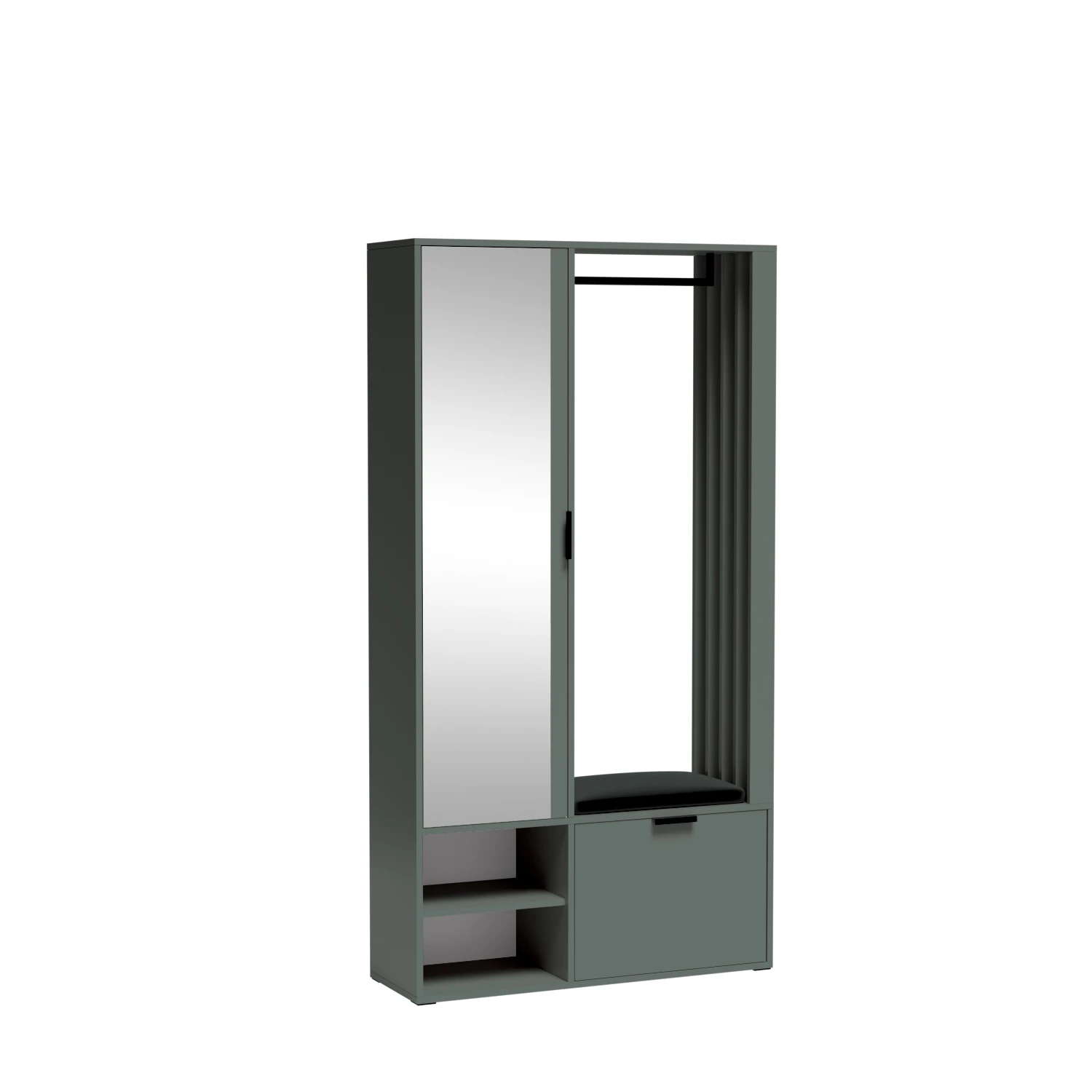 Garderoba do przedpokoju MERIN – stone green, nowoczesna szafa garderoba z lustrem i miejscem na buty oraz odzież