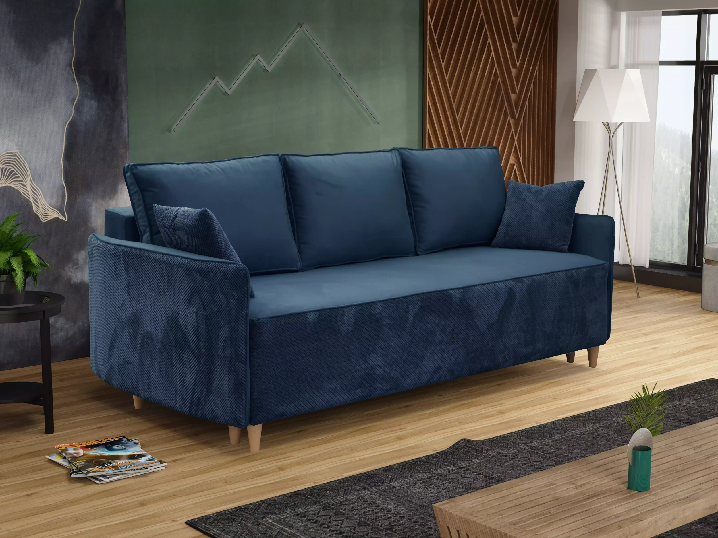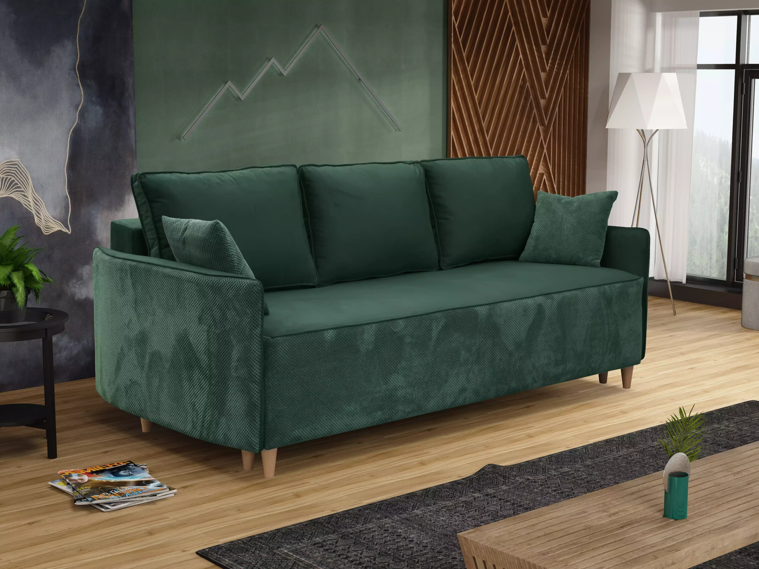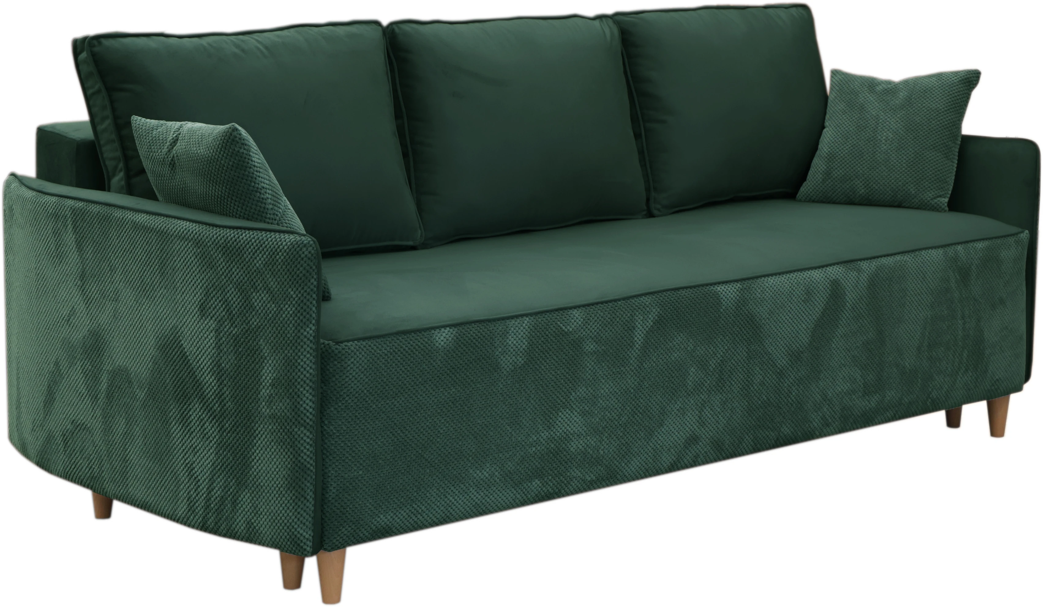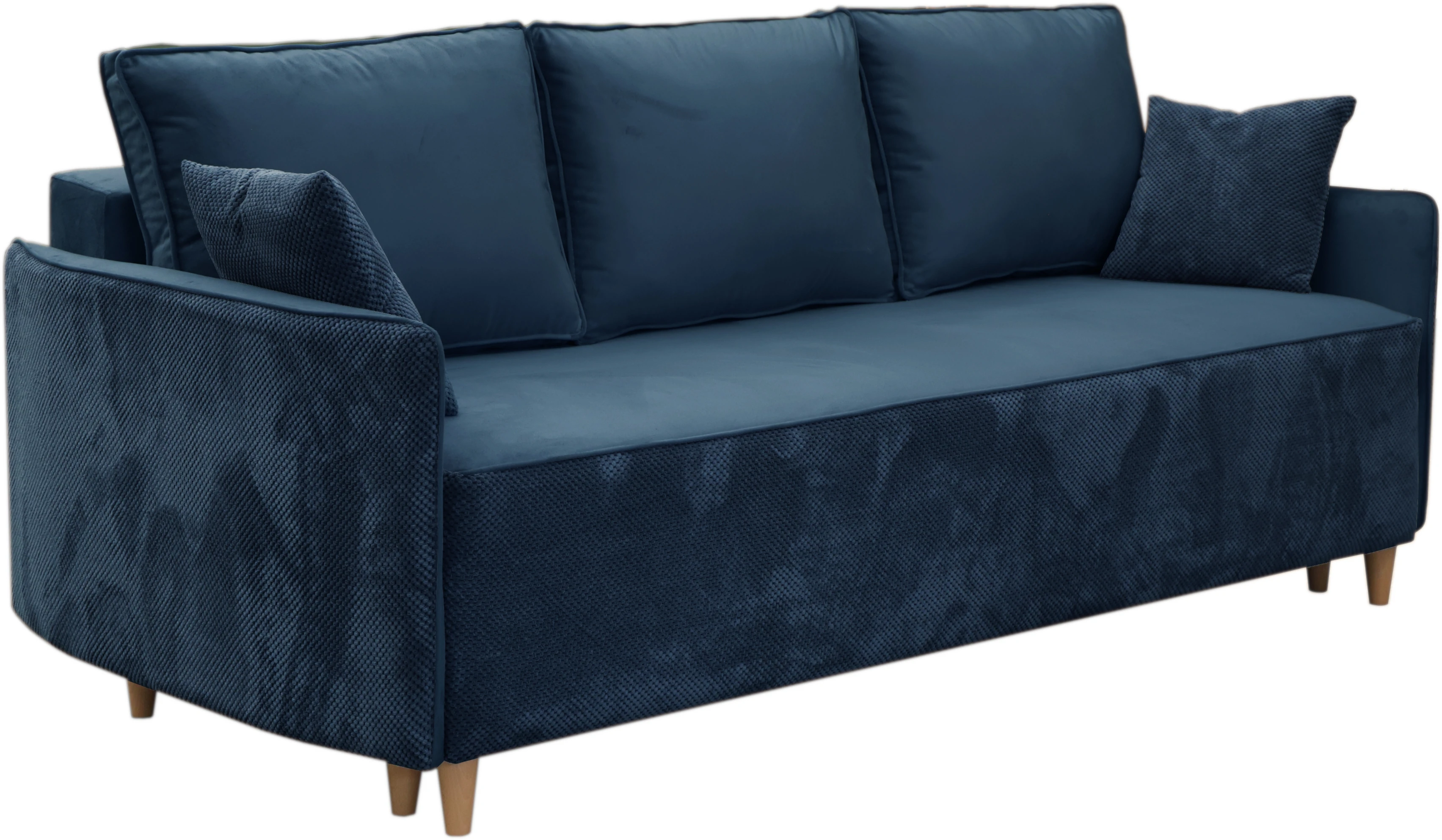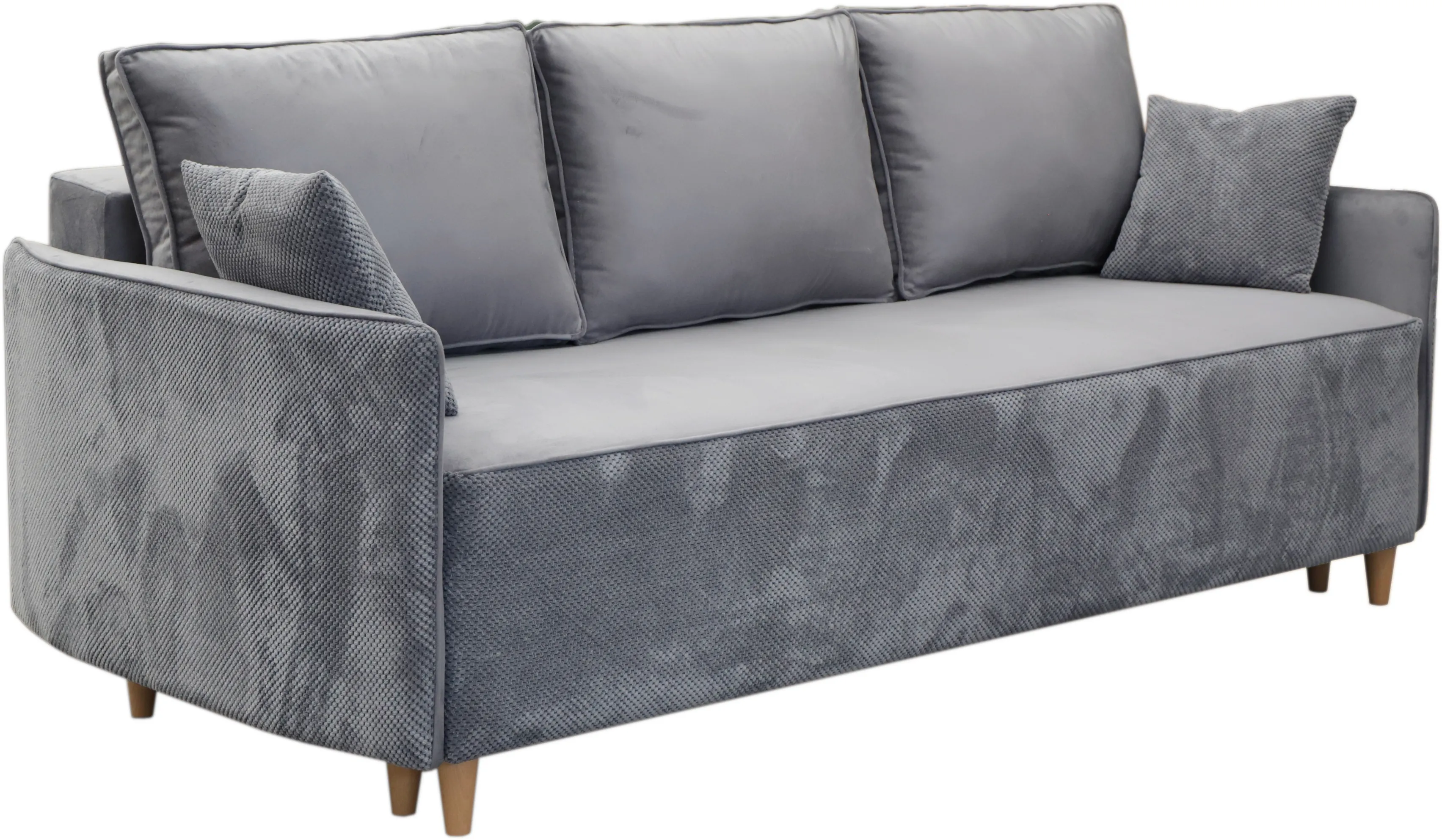Dzięki funkcji spania kanapa w kilka chwil zamienia się w wygodne łóżko. Wbudowany pojemnik na pościel ułatwia utrzymanie porządku w salonie, a dołączone małe poduszki jaśki dodają jej przytulnego charakteru.