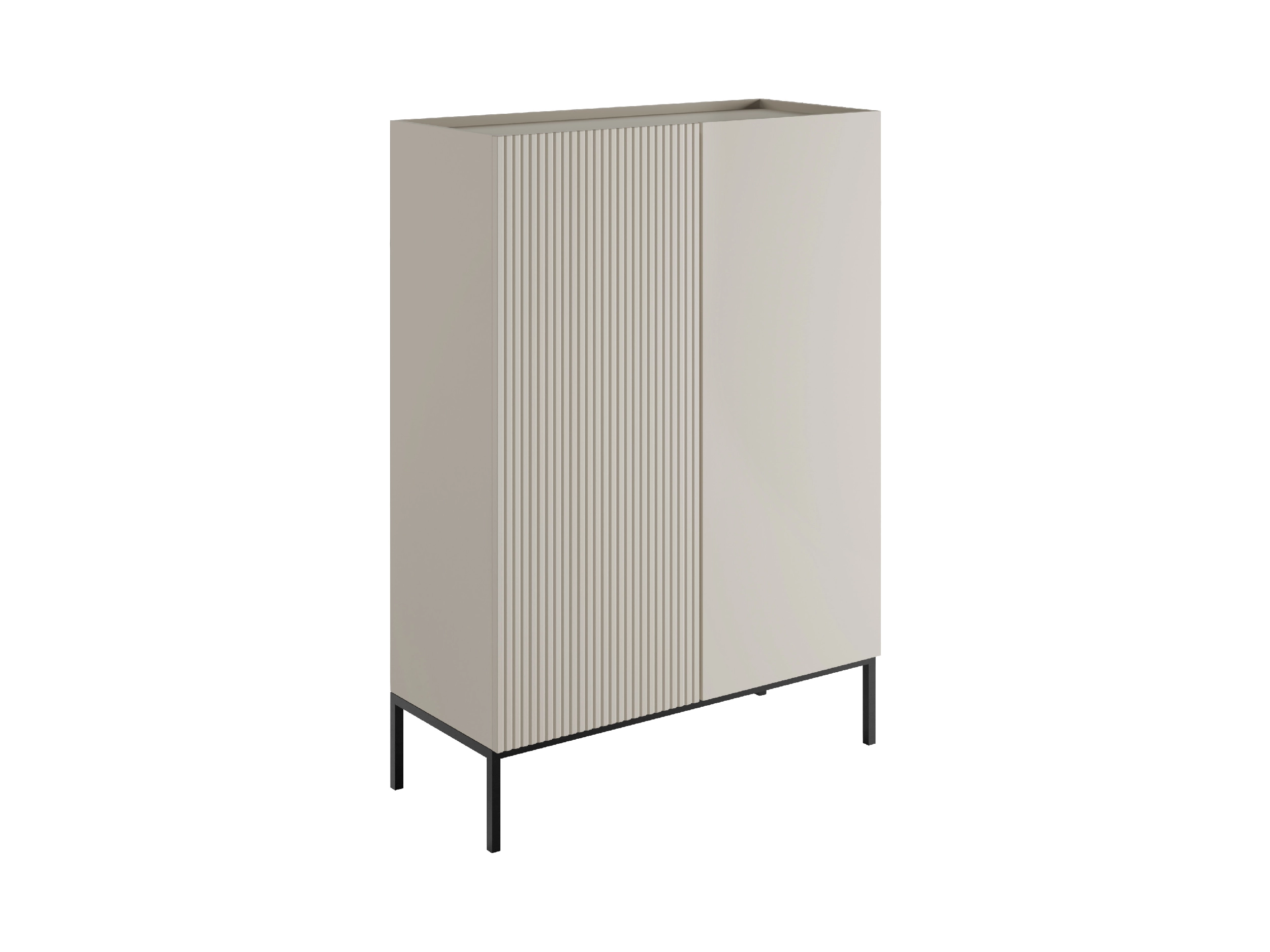Komoda COMO C05 to stylowy i funkcjonalny mebel, który doskonale odnajdzie się w każdym nowoczesnym wnętrzu. Jej czysta forma w eleganckim, jednolitym kolorze kaszmir została przełamana designerskim, ryflowanym frontem z MDF, tworząc unikalny efekt wizualny. Taka kompozycja nadaje meblowi wyjątkowego charakteru, a całość osadzona jest na stabilnym, czarnym stelażu z metalu malowanego proszkowo, co dodaje mu lekkości i finezji. To idealny element dekoracyjny i praktyczne rozwiązanie w jednym.