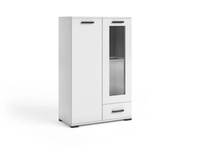 Komoda z witryną FELIA F4 biała – jasna bryła z przeszkleniem i praktyczną szufladą