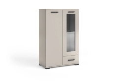 Komoda z witryną FELIA F4 kaszmir – nowoczesna forma z przeszkleniem i szufladą