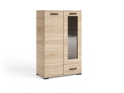 Komoda z witryną FELIA F4 dąb sonoma – lekka wizualnie bryła z szufladą i przeszkleniem