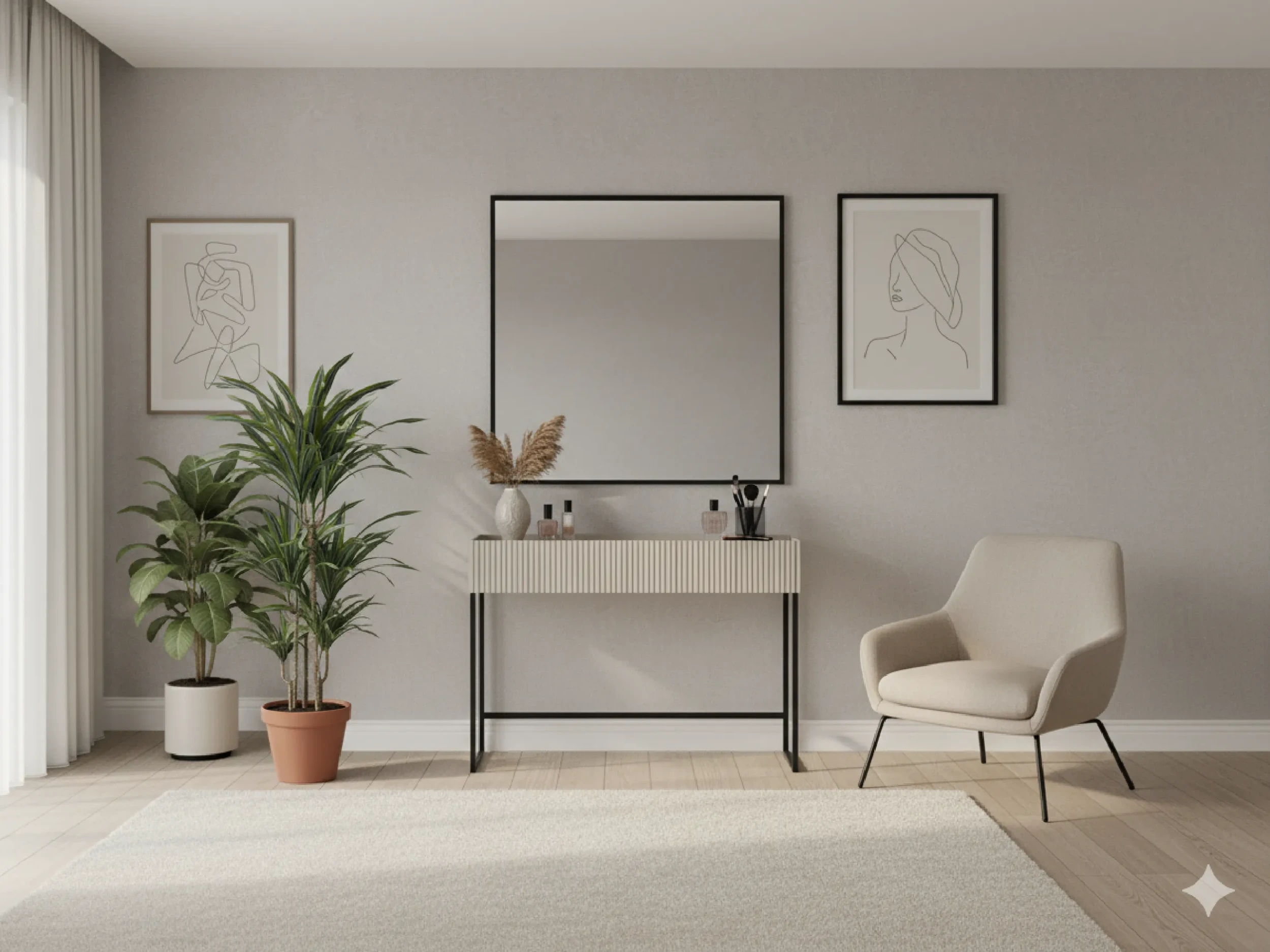 Model wyposażony jest w dwie pojemne szuflady z pełnym wysuwem, które pozwalają wygodnie przechowywać klucze, dokumenty i inne drobiazgi. Brak uchwytów oraz otwieranie poprzez lekko wystający front podkreślają prosty, nowoczesny charakter mebla i zapewniają komfort użytkowania. Konsola sprawdzi się w przedpokoju, salonie lub sypialni, gdzie może pełnić również funkcję toaletki. Uniwersalna kolorystyka oraz smukła forma ułatwiają dopasowanie jej do różnych aranżacji, a blat daje miejsce na lampę, dekoracje czy ramki ze zdjęciami, pozwalając stworzyć spójną i uporządkowaną przestrzeń.