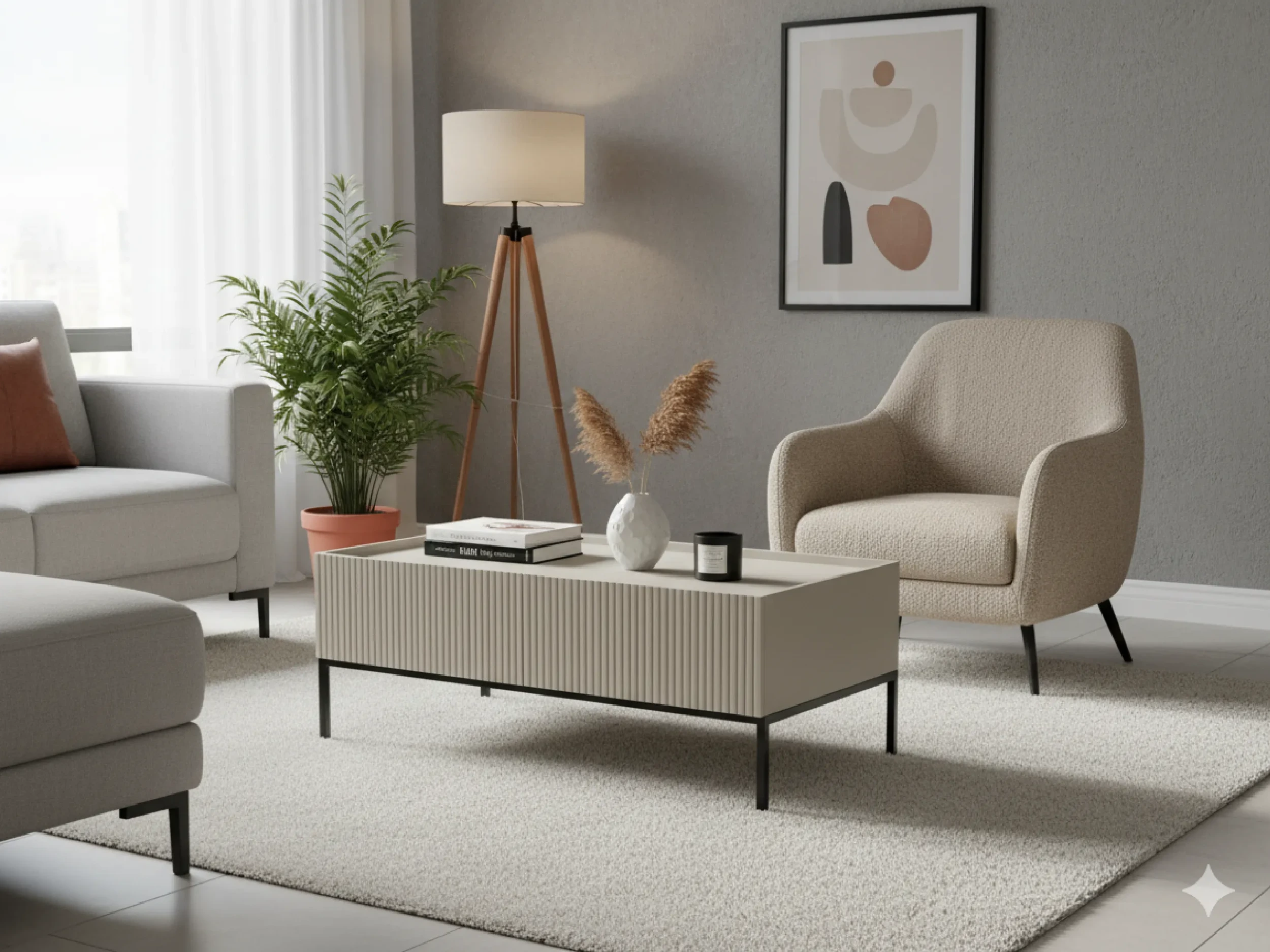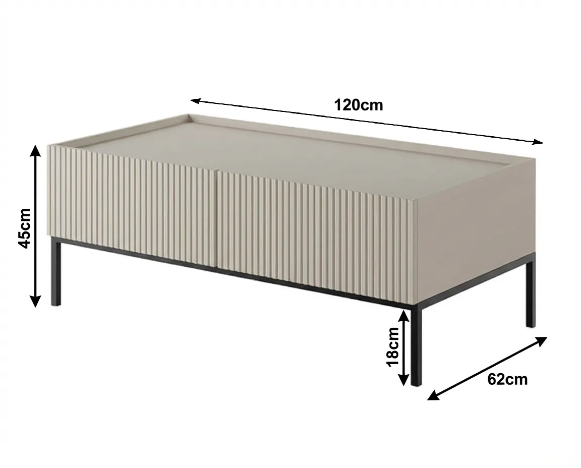 Ława COMO C03 kaszmir z ryflowanym frontem – stolik kawowy w eleganckim wydaniu