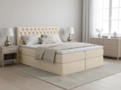 Łóżko kontynentalne MARGO 160x200 to bestseller wśród łóżek tapicerowanych – zachwyca eleganckim, pikowanym wezgłowiem i perfekcyjnym wykonaniem. Zastosowanie wyłącznie starannie dobranych tkanin welurowych nadaje całości wyrafinowanego stylu, który doskonale wpisuje się w nowoczesne i klasyczne aranżacje sypialni.