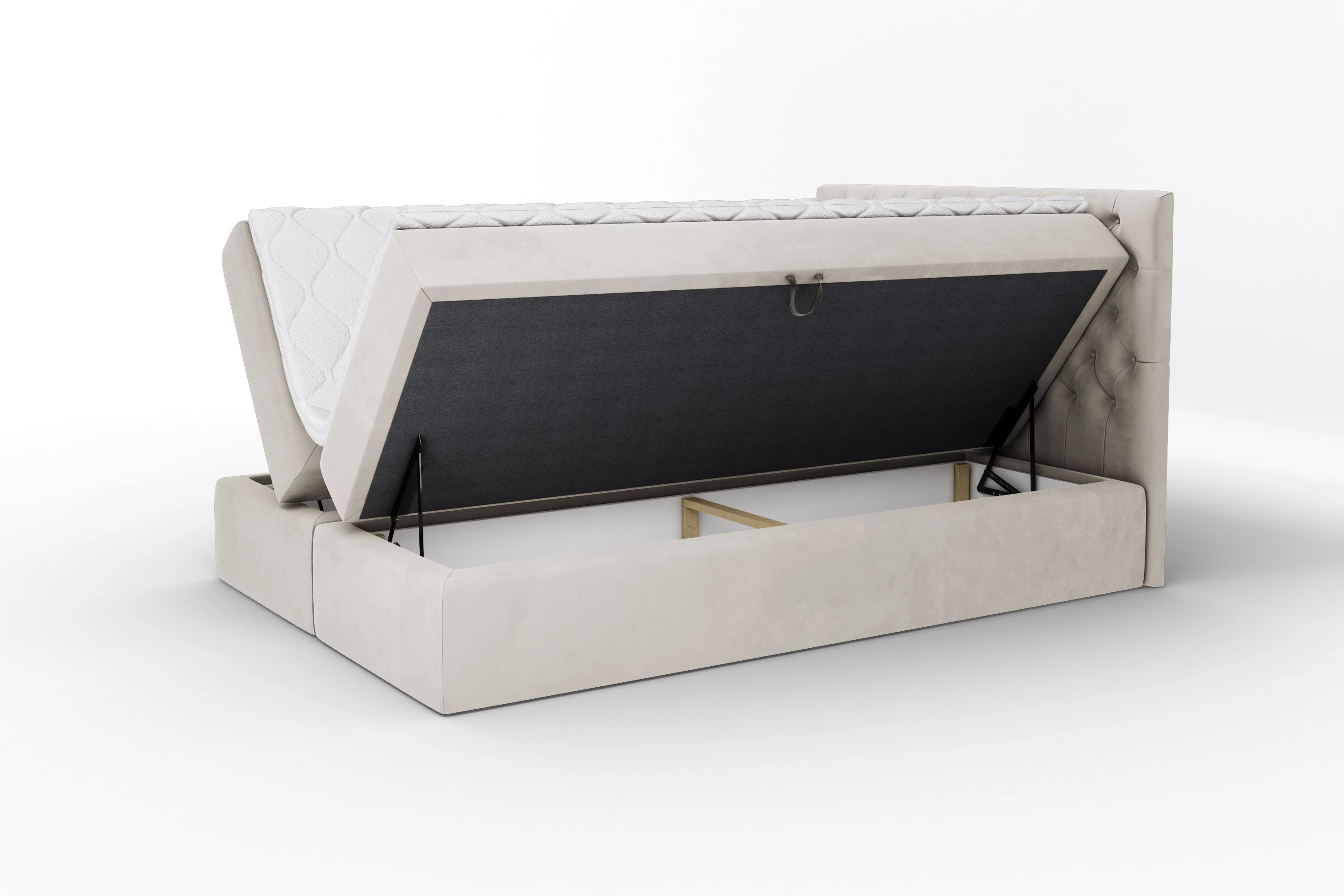Pojemne schowki na pościel pod całym materacem otwierane automatem, pozwalają wygodnie przechowywać tekstylia i zachować porządek w sypialni. Konstrukcja oparta na solidnych materiałach i łatwość montażu sprawiają, że MARGO 160x200 to inwestycja w wygodę na długie lata.