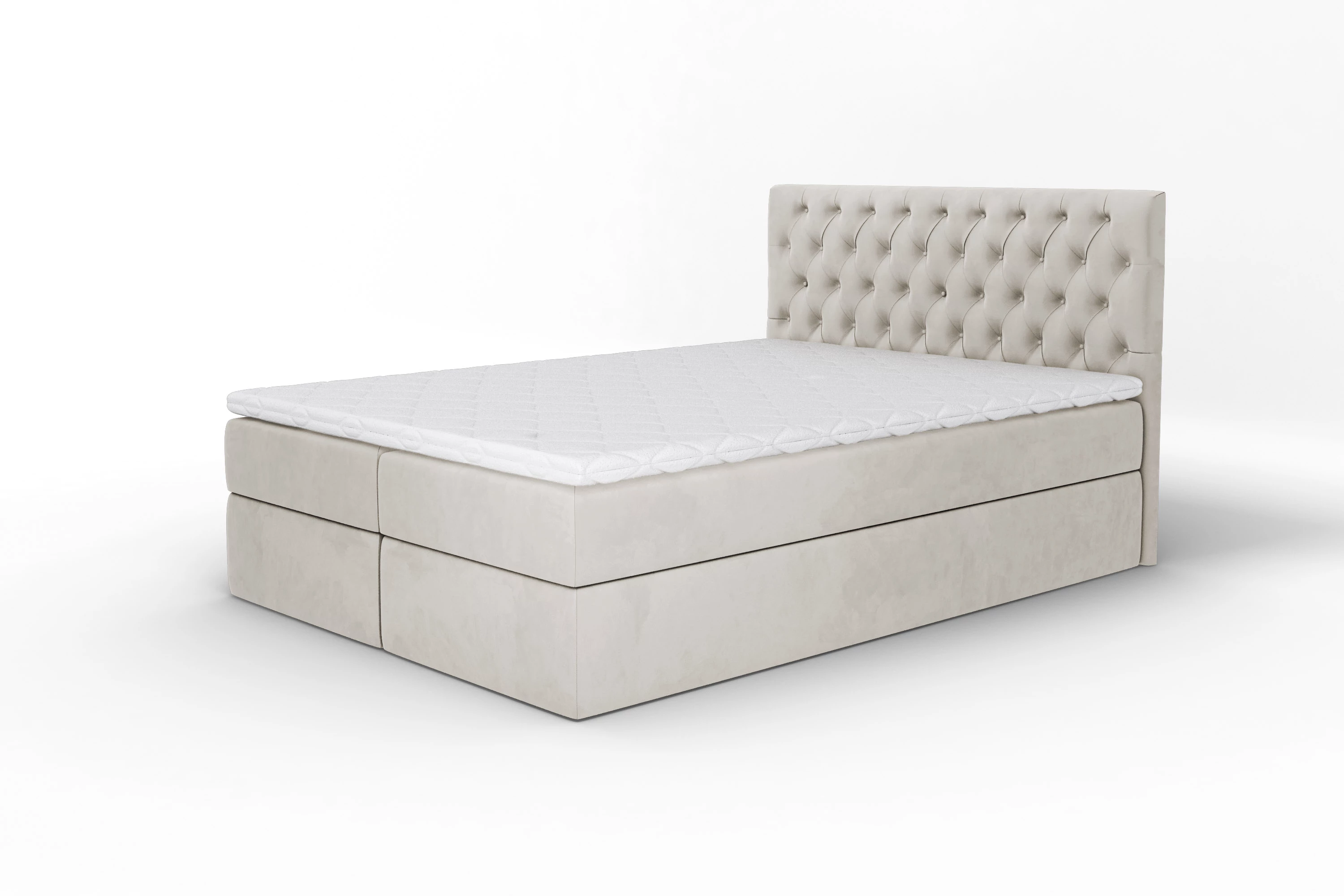 W standardzie znajdziesz komfortowy materac bonellowy z pianką, który zapewnia odpowiednie podparcie kręgosłupa i przyjemną sprężystość. Dla wymagających dostępny jest materac pocket – sprężyny pracują indywidualnie, zapewniając spokojny sen nawet przy ruchach drugiej osoby. Topper nawierzchniowy, dostępny opcjonalnie, podnosi jakość snu i pozwala łatwo utrzymać higienę.