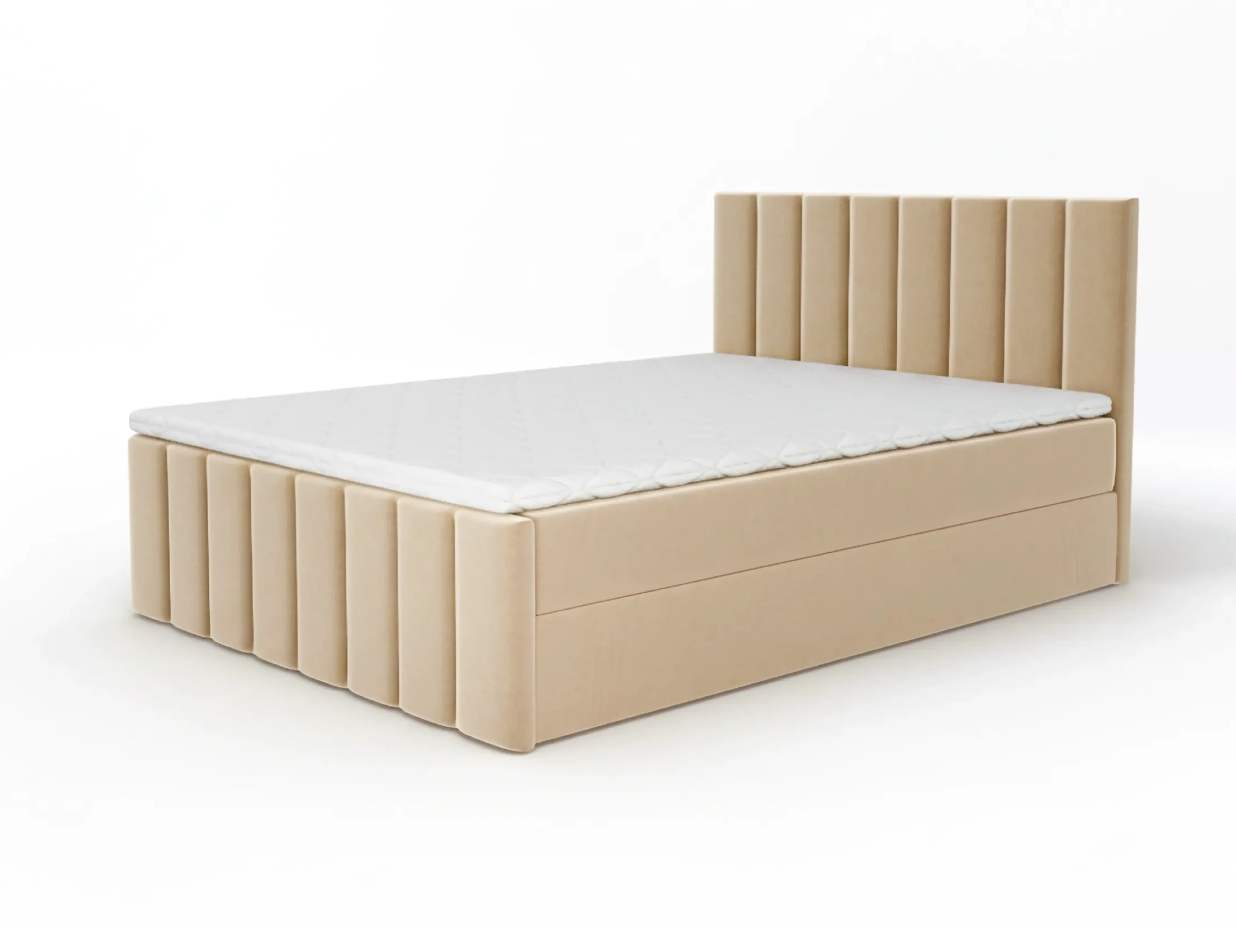 Model 200x200 oferuje ogromną powierzchnię snu oraz zestaw komfortowych rozwiązań. W standardzie otrzymujesz dwuczęściowy materac bonellowy z pianką, który zapewnia stabilne podparcie i wygodę podczas codziennego użytkowania. W opcji za dopłatą dostępny jest materac pocket, idealny dla wymagających użytkowników oraz par – sprężyny kieszeniowe pracują indywidualnie, oferując maksymalne dopasowanie i redukcję przenoszenia ruchu.