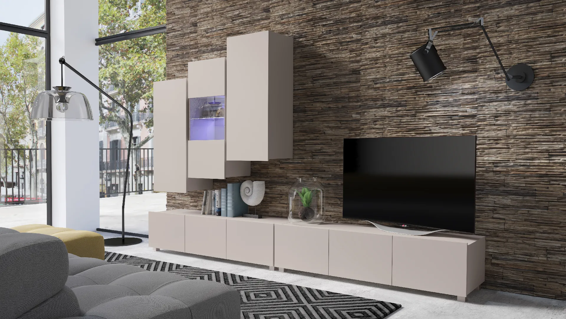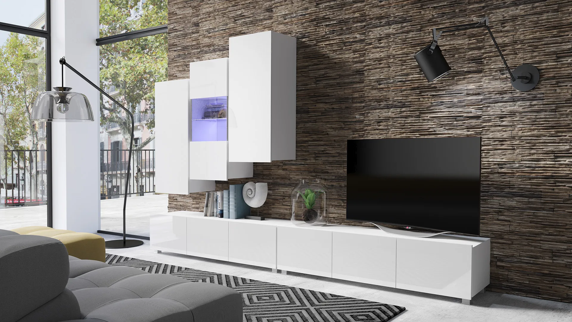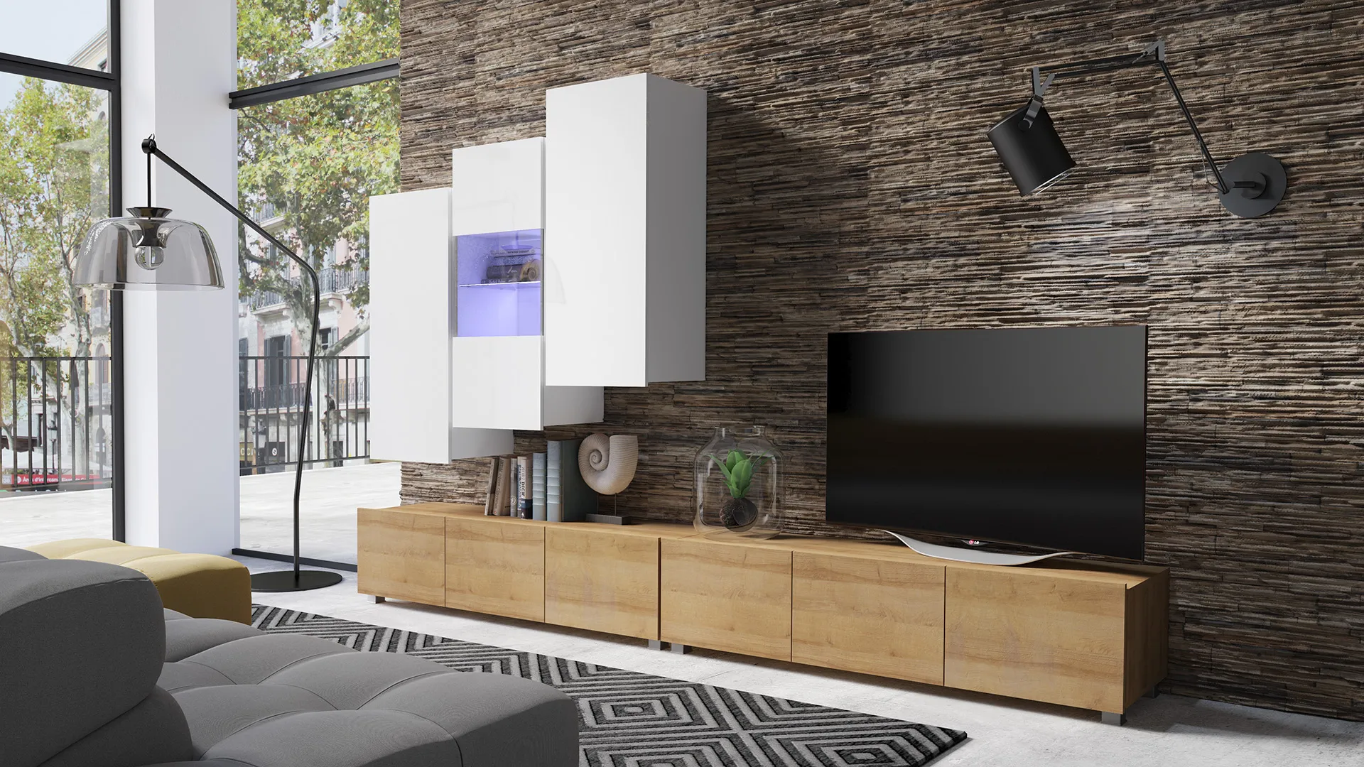 - Meblościanka do salonu – gotowy zestaw do budowy nowoczesnej strefy RTV