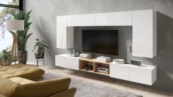 Meblościanka do salonu CALERO C18 – 7 elementów z 2 szafkami RTV 100 cm, półkami wiszącymi i otwartą wnęką