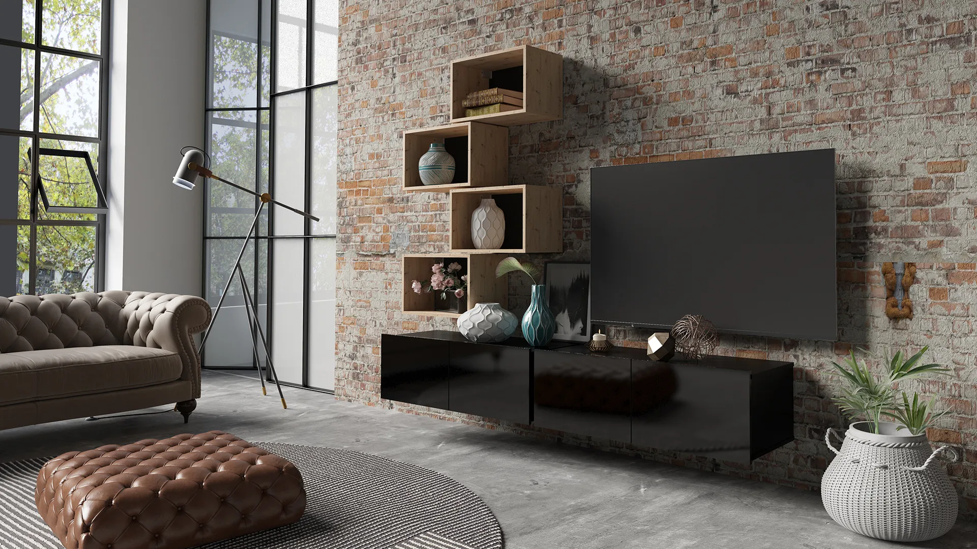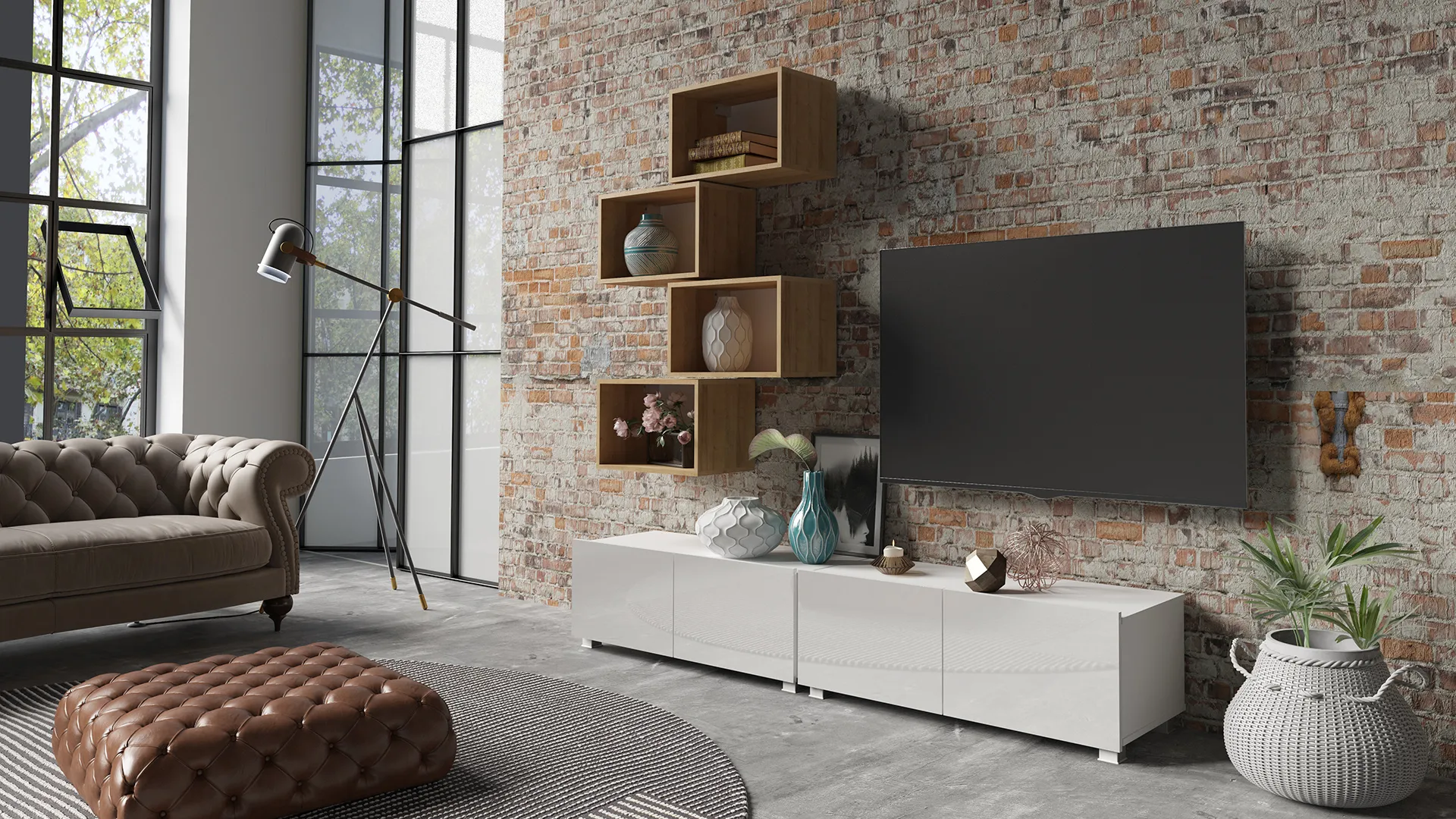 - 4x półki wiszące otwarte – miejsce na dekoracje, książki i dodatki