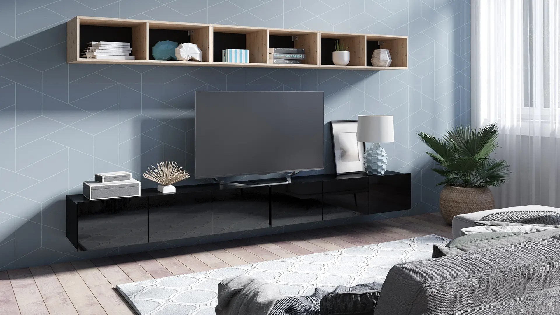- Meblościanka do salonu – nowoczesny zestaw do strefy telewizora