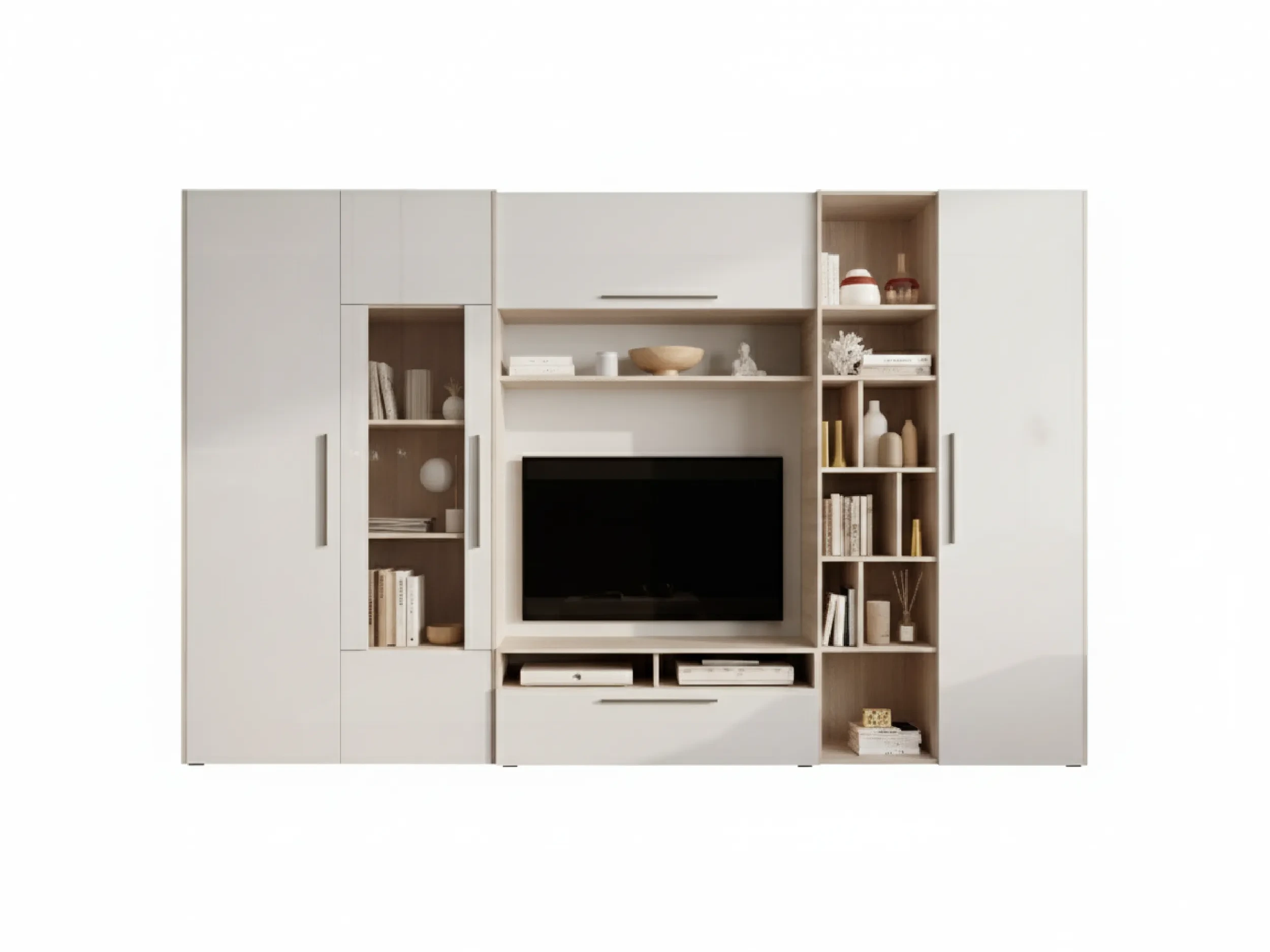 - Segment RTV z półkami – wygodne ustawienie telewizora oraz sprzętu multimedialnego.