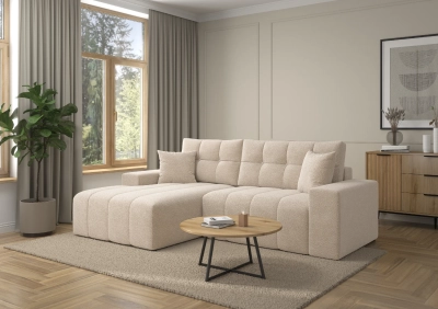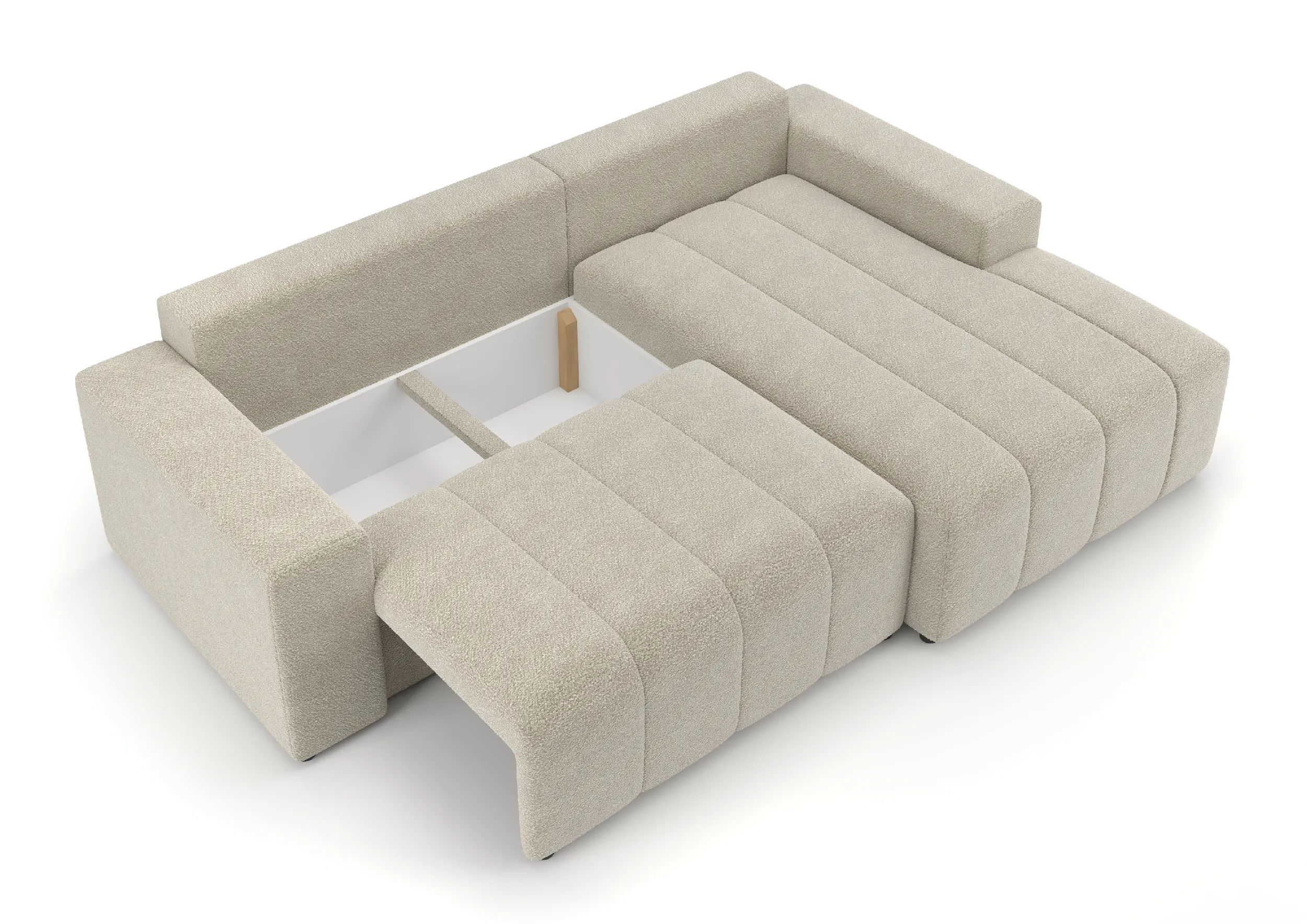Rozkładany narożnik Gaja z funkcją spania i pojemnikiem na pościel do nowoczesnego salonu