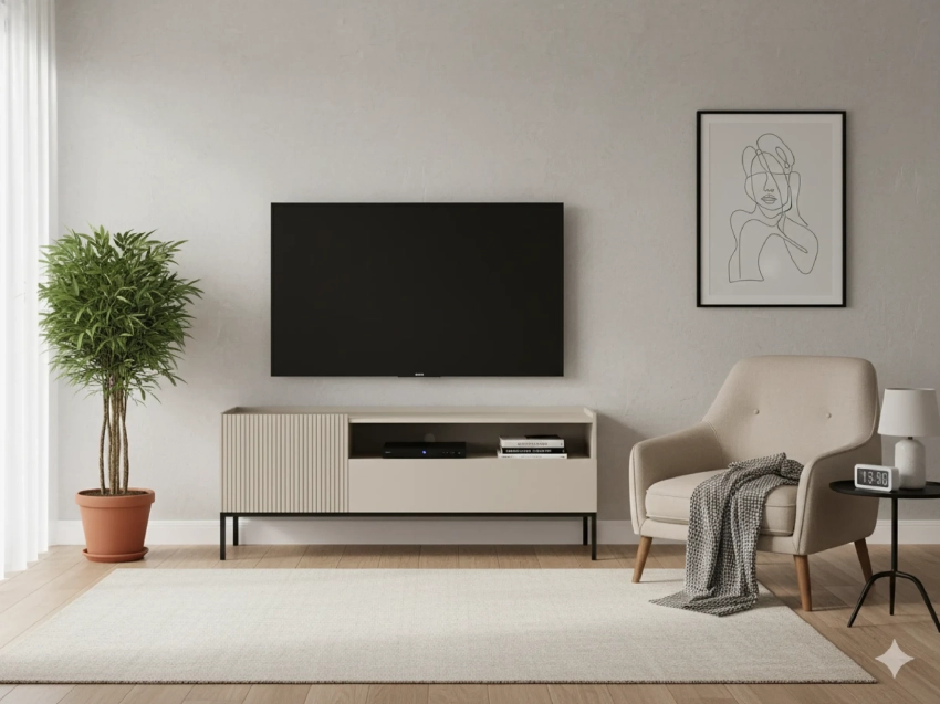 Mebel pod telewizor z zabudową zamkniętą – estetyka i porządek