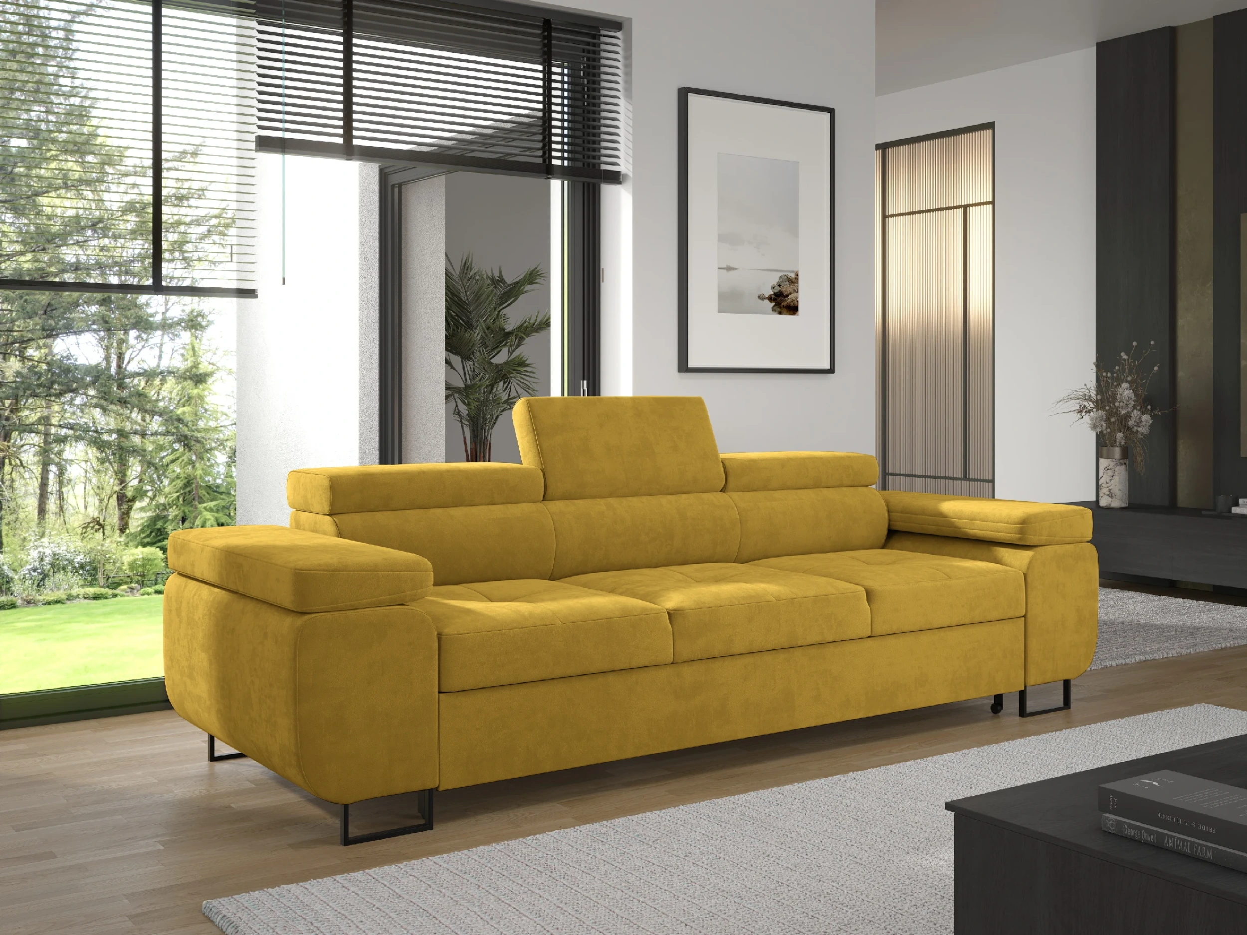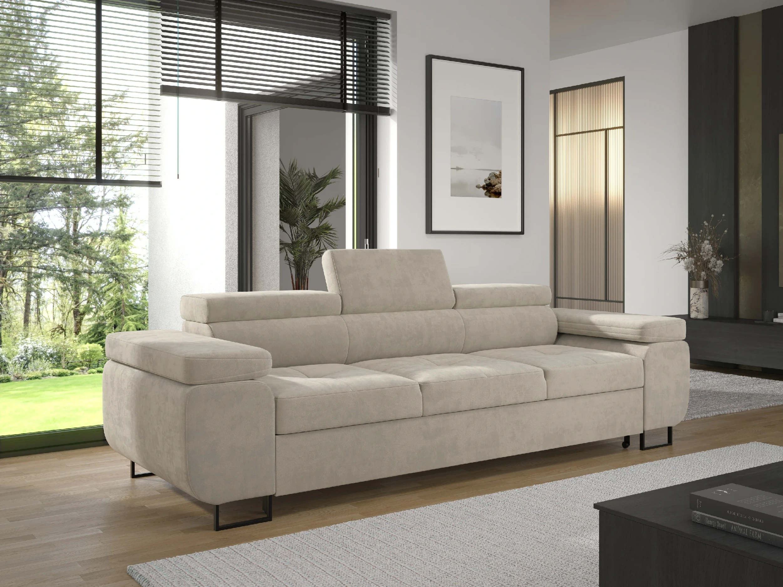 - Nowoczesna kanapa 3-osobowa z funkcją spania o wymiarach 190 × 130 cm – idealna do codziennego użytku i dla gości.