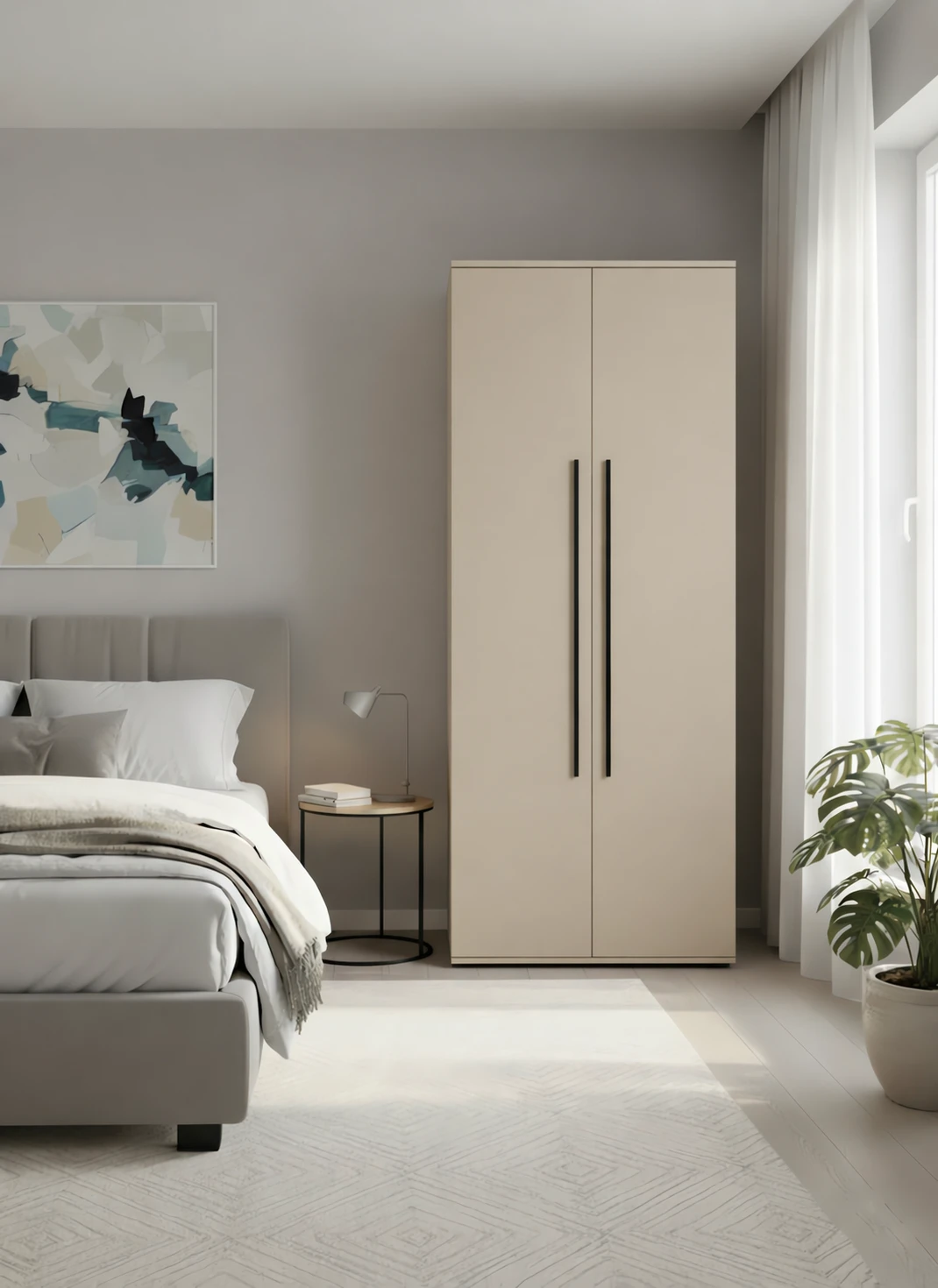 Szafa na ubrania LINEA w kolorze kaszmir to propozycja do wnętrz urządzonych spokojnie, nowocześnie i z wyczuciem. Ten modny, stonowany odcień dobrze wygląda w sypialniach, pokojach i przedpokojach, w których zależy na jasnym, ale nie całkiem białym meblu. Kaszmir świetnie łączy się z drewnem, czernią, beżami i subtelnymi dodatkami, dzięki czemu łatwo wpasowuje się w aktualne trendy wnętrzarskie.