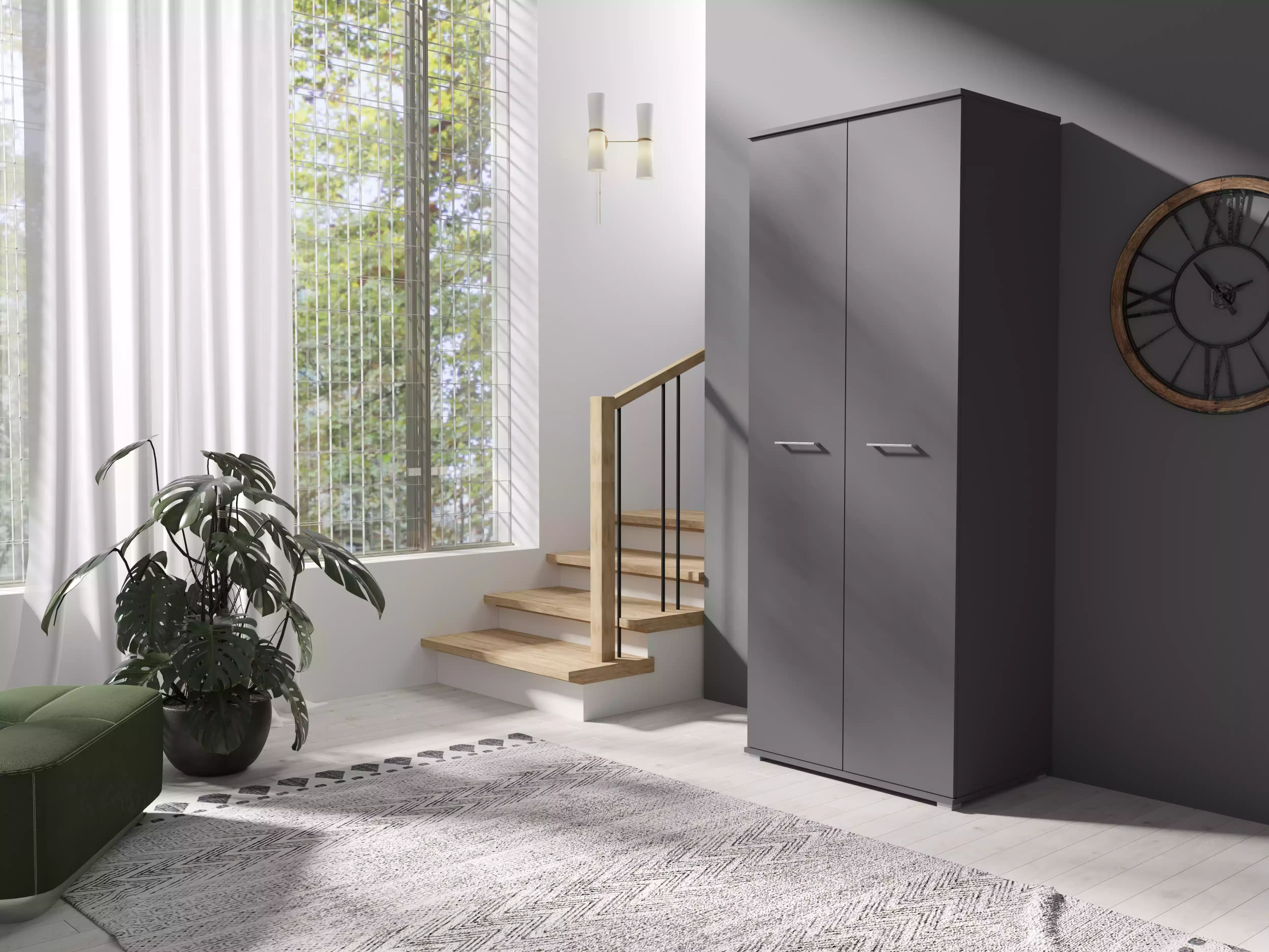 Szafa dwudrzwiowa LUMI 80 cm antracyt – wąska szafa na ubrania do sypialni i przedpokoju