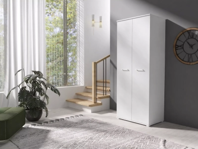 Model został zaprojektowany tak, aby wygodnie zorganizować codziennie używaną odzież. Wnętrze z drążkiem i półkami daje praktyczne możliwości przechowywania, dlatego biała szafa dobrze sprawdzi się jako podstawowy mebel do ubrań, dodatków i rzeczy sezonowych. To funkcjonalne rozwiązanie, które łączy estetykę z wygodą użytkowania.