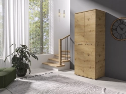 Szafa na ubrania LUMI 80 cm w kolorze dąb artisan to propozycja dla osób, które lubią wnętrza przytulne, ale nadal nowoczesne. Ciepły odcień drewna dobrze ociepla aranżację i sprawia, że mebel pasuje zarówno do sypialni, jak i do pokoju czy przedpokoju. To uniwersalny wybór do mieszkań, w których liczy się naturalny efekt i funkcjonalna forma.