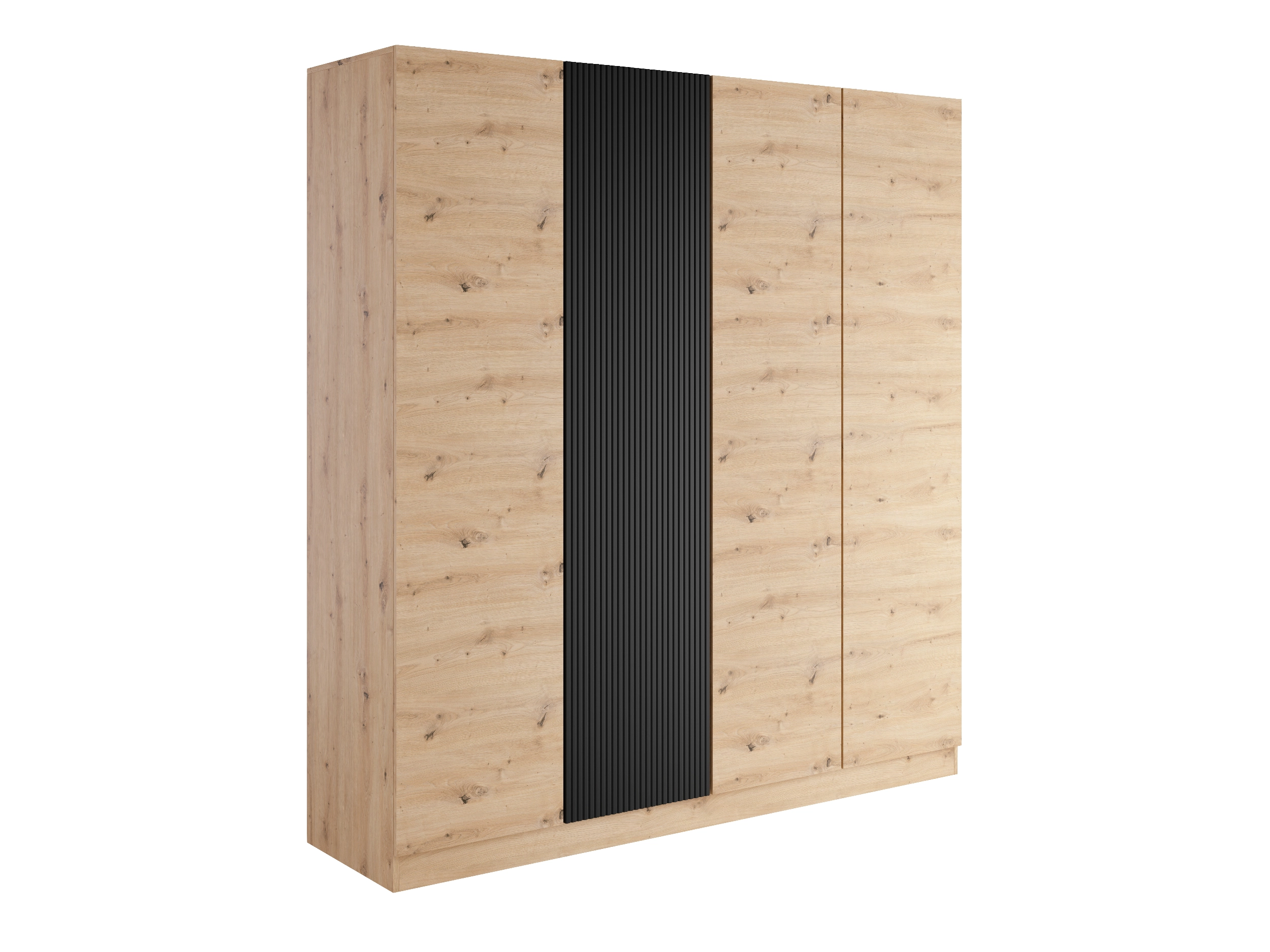Szafa ubraniowa COMO 4D to idealna propozycja do sypialni, garderoby lub przedpokoju. Jej naturalny dekor dębu artisan w połączeniu z czarną ryflowaną wstawką tworzy nowoczesną, loftową kompozycję, która podkreśla charakter wnętrza. Brak uchwytów, system push to open oraz subtelne linie frontów podkreślają minimalistyczny design mebla.