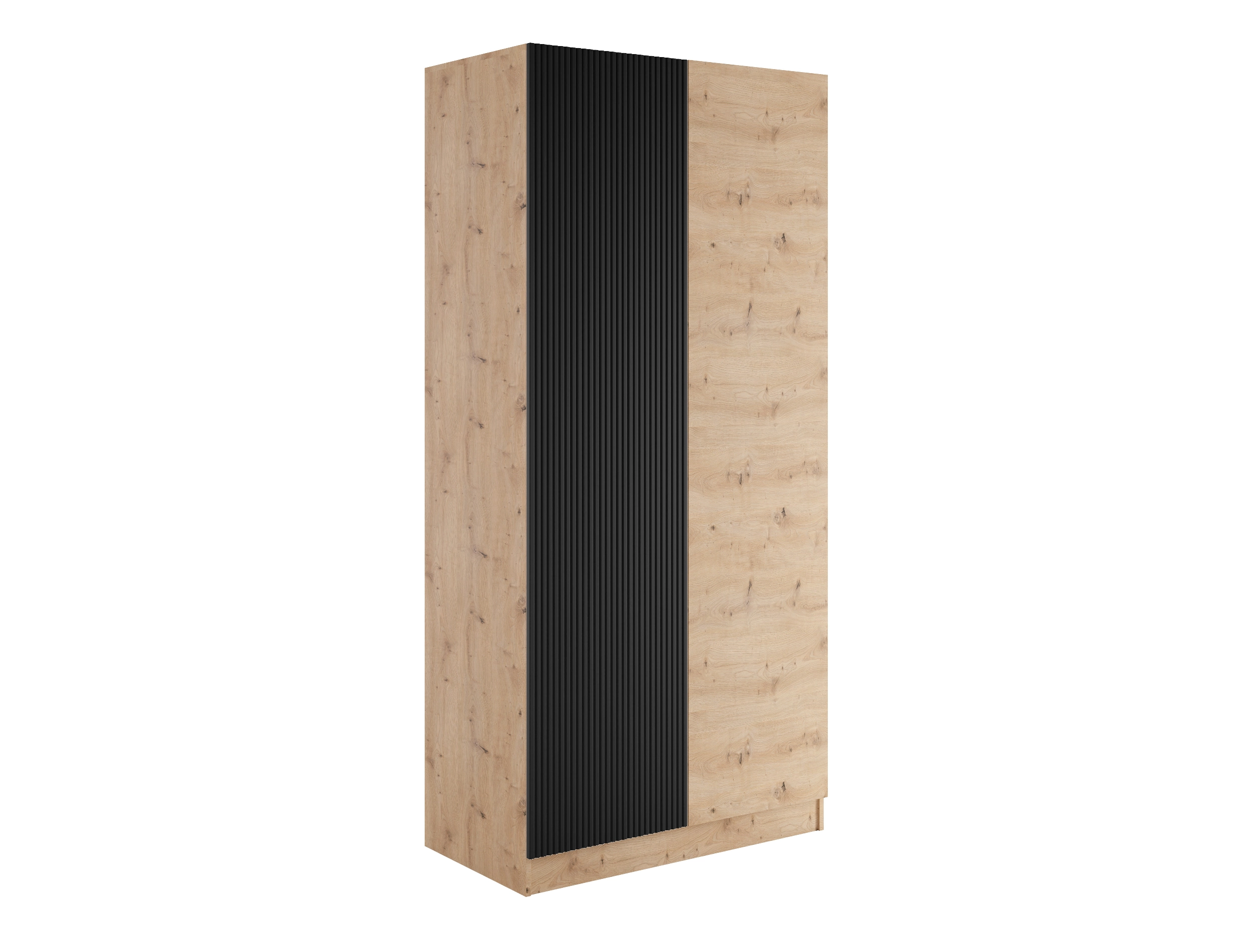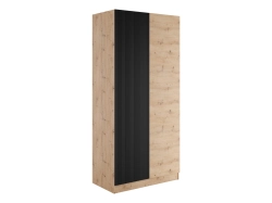Szafa dwudrzwiowa COMO C12 to stylowy i funkcjonalny mebel, który doskonale odzwierciedla ducha stylu loftowego i industrialnego. Jej imponująca wysokość (220 cm) maksymalnie wykorzystuje przestrzeń pionową, a unikalny design przyciąga wzrok: łączy ciepły dekor dębu artisan z wyrazistą, czarną wstawką z ryflowanego MDF umieszczoną centralnie na froncie. Ta modna tekstura nadaje szafie głębię i charakter, czyniąc ją centralnym punktem każdej aranżacji.