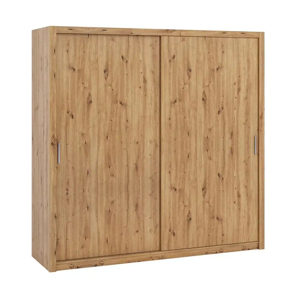 Szafa przesuwna BOREA BO14 220 cm w kolorze dąb artisan to idealne rozwiązanie do jasnych, nowoczesnych i skandynawskich wnętrz. Naturalny dekor drewna nadaje aranżacji lekkości, a duża szerokość szafy pozwala na wygodne przechowywanie rozbudowanej garderoby.