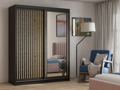Dwudrzwiowa szafa przesuwna LAMIRO 180 cm z lamelami i lustrem na frontach.