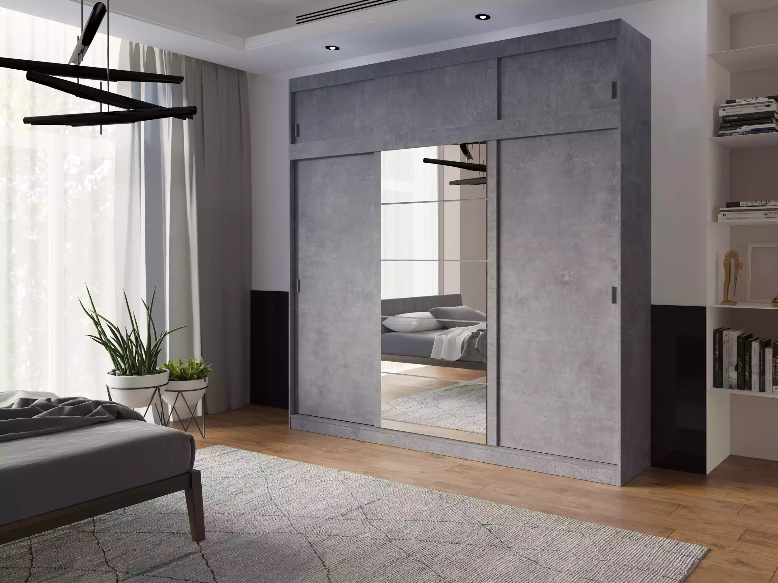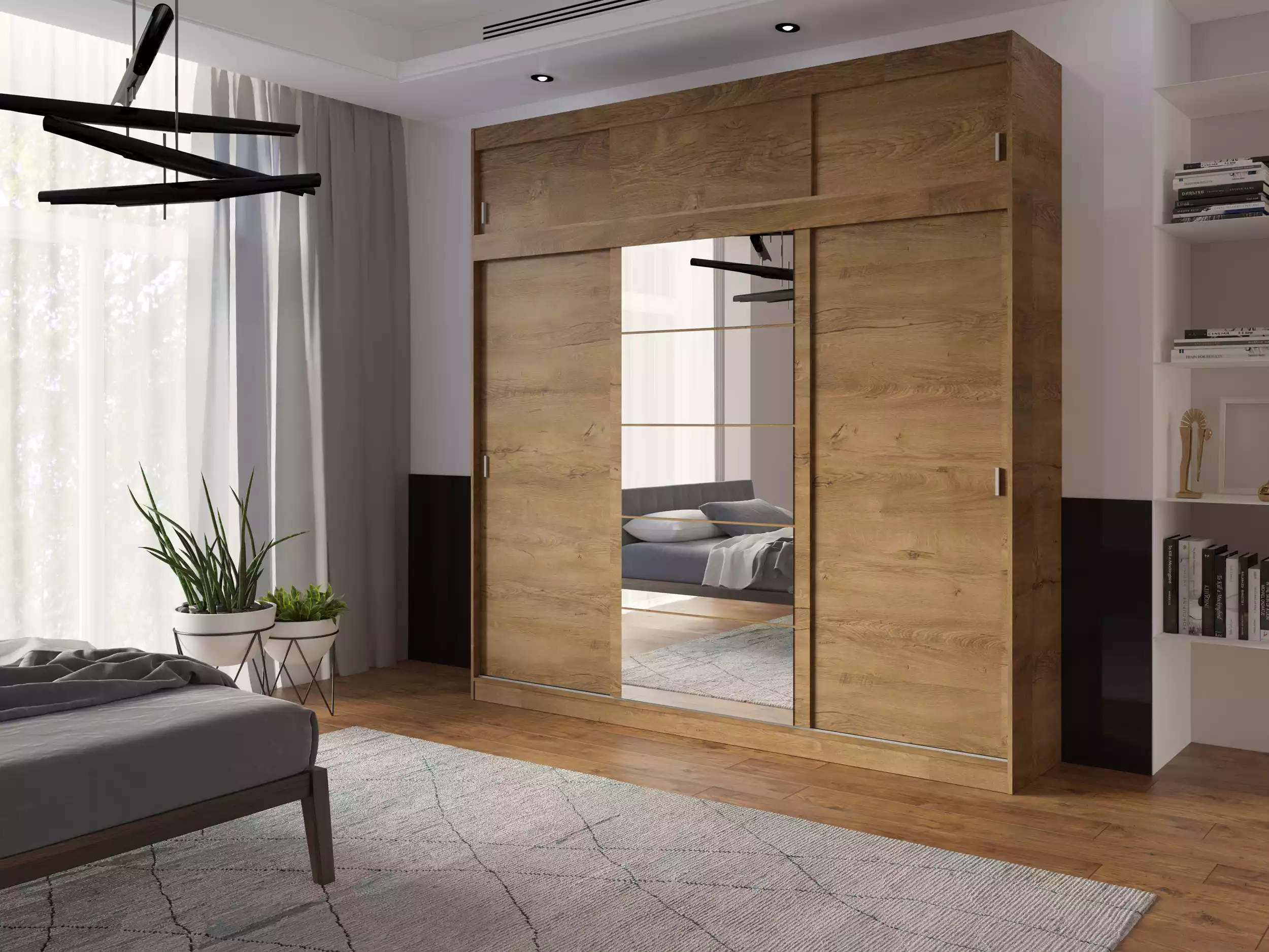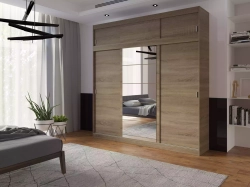 Utrzymanie porządku staje się proste z nowoczesną szafą Mila. Przemyślany układ wnętrza, dostępny w trzech wariantach, pozwala na elastyczne dostosowanie do własnych potrzeb, dzięki czemu każda część garderoby znajdzie swoje miejsce. Drzwi przesuwne szafy Mila, wyposażone w niezawodny system jezdny LAGUNA, poruszają się płynnie, bez żadnych zakłóceń. Centralnie umieszczone lustro nie tylko umożliwia szybkie poprawienie wyglądu, ale również pełni funkcję dekoracyjną, optycznie powiększając przestrzeń i wprowadzając do pomieszczenia więcej światła. To rozwiązanie, które przypadnie do gustu osobom ceniącym funkcjonalność połączoną z nowoczesnym wzornictwem.