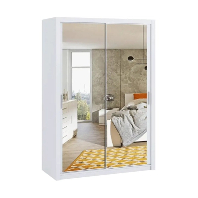 Duża szafa przesuwna z lustrem 150 cm BOREA BO9 – biała