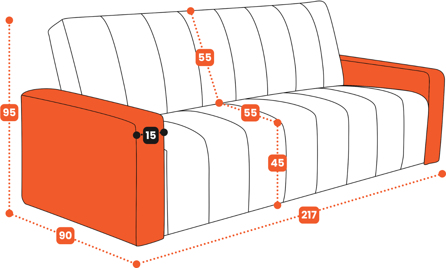 - głębokość siedziska: 55 cm,